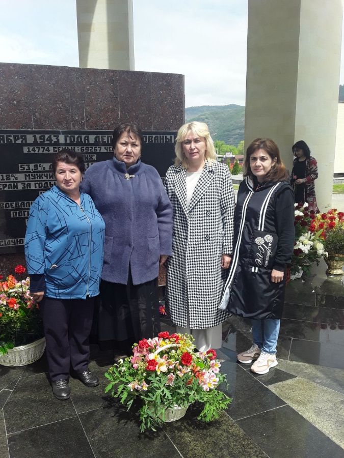 Делегация МБОУ КГО "СШ п. Орджоникидзевский им. Г. Д. Бутаева" во главе с директором школы возложили цветы к Мемориалу жертвам депортации карачаевского народа.