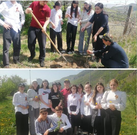 Учащиеся 9 класса МБОУ КГО "СШ п. Орджоникидзевский им. Г. Д. Бутаева" приняли участие в акции "Сад памяти".