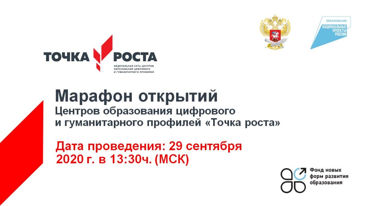 29 сентября по всей России стартовал Марафон открытий Центров образования цифрового и гуманитарного профилей «Точка роста». Центры созданы в рамках реализации федерального проекта «Современная школа» национального проекта «Образование».