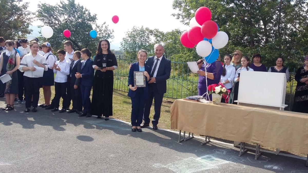 Торжественную линейку открыл директор школы Лайпанова П. К. и зачитала приказ «О зачислении в первый класс и о зачисление в 10 класс учащихся на основании их личных заявлений». Затем она поздравил всех с наступившим новым учебным годом и подвела итоги прошедшего учебного года. Лучшим ученикам школы вручила Почетные грамоты.