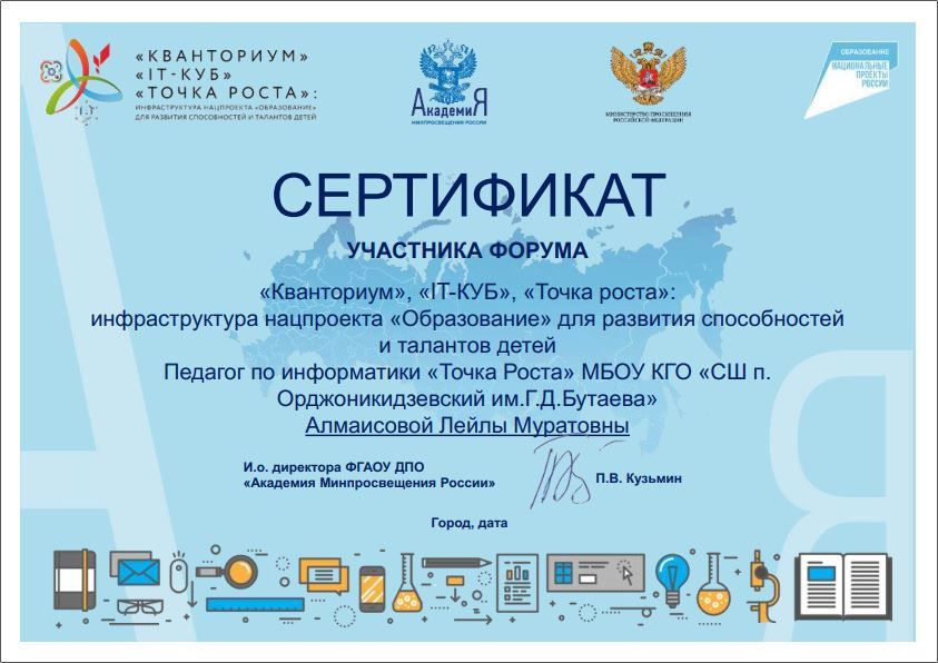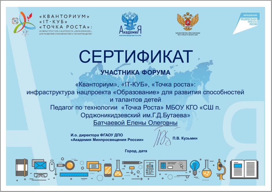 В рамках федерального проекта «Современная школа» на базе МБОУ КГО «СШ п. Орджоникидзевский им.Г.Д.Бутаева» с 2020 года функционирует Центр образования цифрового и гуманитарного профилей «Точка роста» как структурное подразделение образовательной организации